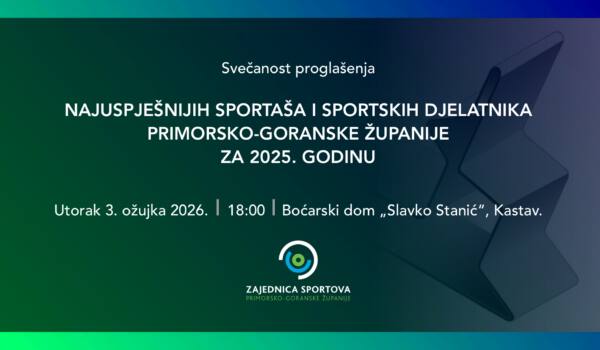 Zajednica sportova PGŽ objavljuje Javni poziv za dodjelu sredstava za organizaciju sportskih manifestacija od posebnog značaja za Primorsko-goransku županiju koje se provode od 1.1. do 31.12.2026. g. Rok za podnošenje pisanih prijedloga je 30 dana od objave javnog poziva, a zaključno do 24. veljače 2026. godine.