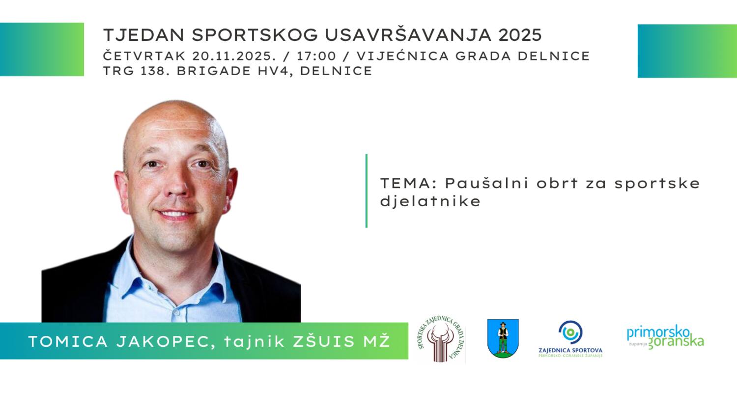 NAJAVA - Tjedan sportskog usavršavanja PGŽ 2025. - Tomica Jakopec - „Paušalni obrt za sportske djelatnike”