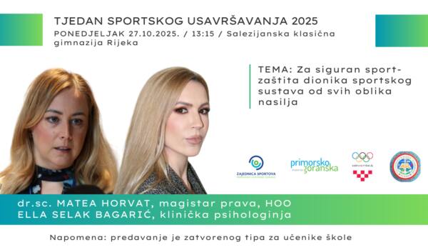 Predavanje na temu "Za siguran sport - zaštite dionika sportskog sustava od svih oblika nasilja” održano je u Salezijanskoj klasičnoj gimnaziji u Rijeci.