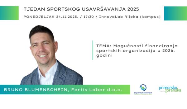 NAJAVA - Tjedan sportskog usavršavanja PGŽ 2025. - Tomica Jakopec - „Paušalni obrt za sportske djelatnike”